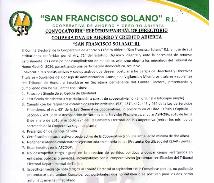 Convocatoria Elección Parcial de Directorio
